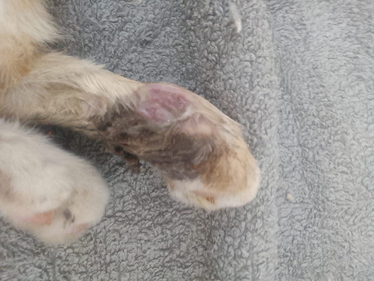 Une semaine de soin avec biogaz et chaussettes changées tous les jours. Pas d’argent pour le vétérinaire… donc on fait comme on peut avec notre expérience… souvent cela fonctionne !