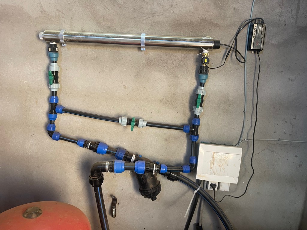 Le système de filtration UV a été installé dès mon arrivée il y a une semaine. Il doit enlever 99 % des bactéries de l’eau du puit.