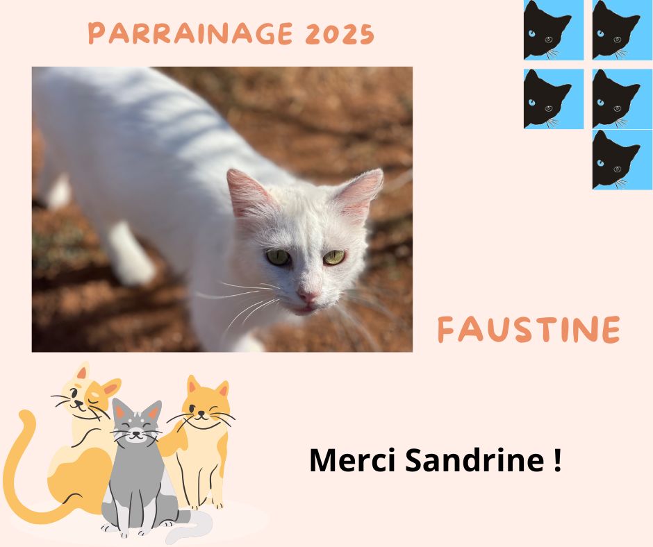 Je ne sais plus comment est arrivé Faustine… sûrement blessée ou malade dans la rue et signalée par une marraine de quartier, comme la plupart.