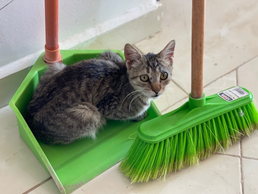 En photo : Zina, qui aide au ménage !