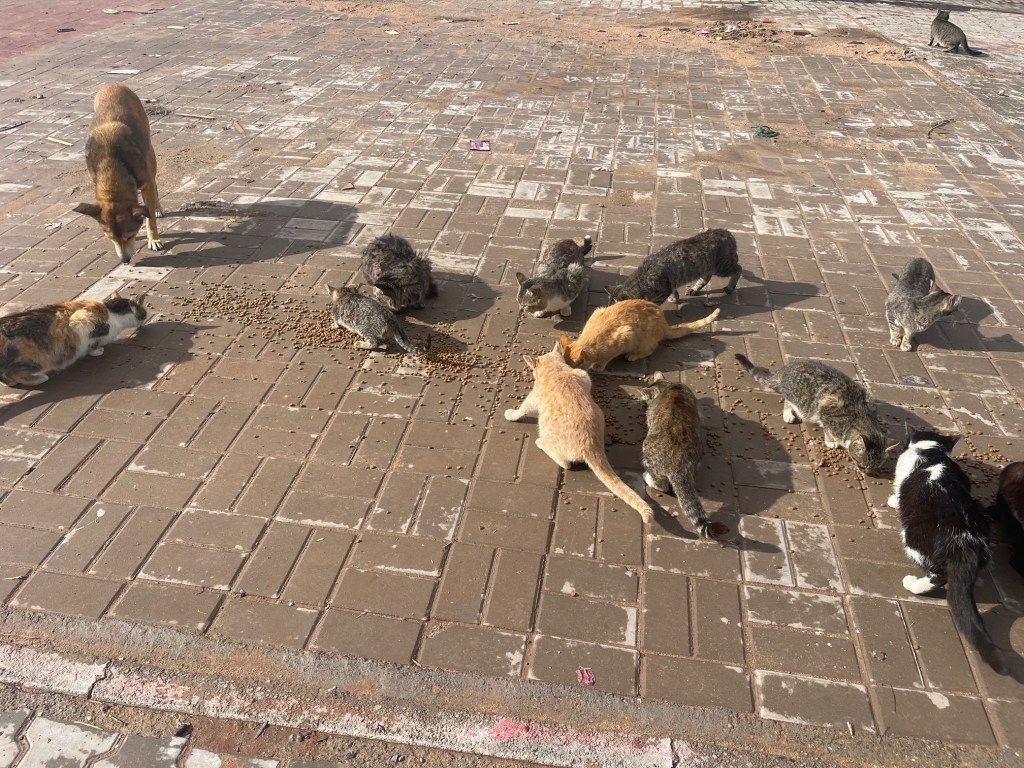 Nourrissage journalier des chats de mon ancien village… jamais je ne les laisserai… je l’appelle le village de l’enfer.