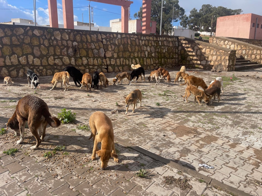 Mehdi, avec le triporteur, va les nourrir tous les jours sauf le mercredi, jour du marché hebdomadaire où nous ne sommes pas les bienvenus et trop de monde…