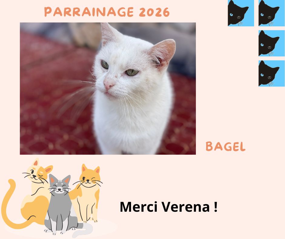 Merci à Kathie Herbst pour le renouvellement du parrainage de son filleul Bagel pour la 4ème année et ainsi financer leur vaccination annuelle 2025 !