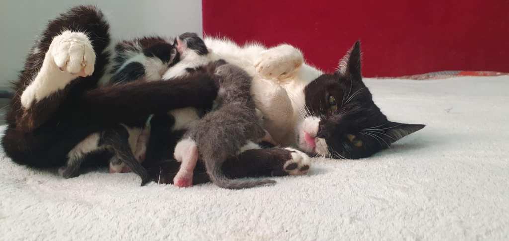 Signalement par une personne d’une chatte qui est rentrée chez lui pour accoucher… Sa mère est allergique… Jamais vu un pays avec autant d’allergiques aux chats…