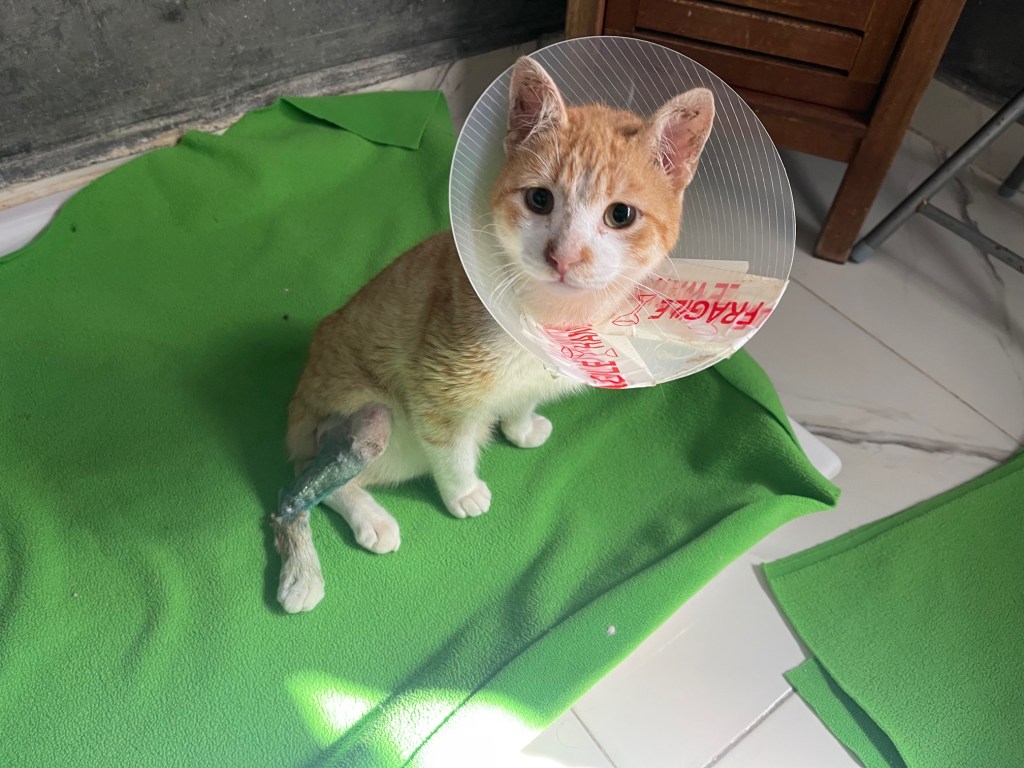 Caruso est un chat adorable, mais qui n’aime pas ou a peur des autres chats… Pour l’instant, il est dans ma salle de bain. On va l’habituer tout doucement après sa rééducation.