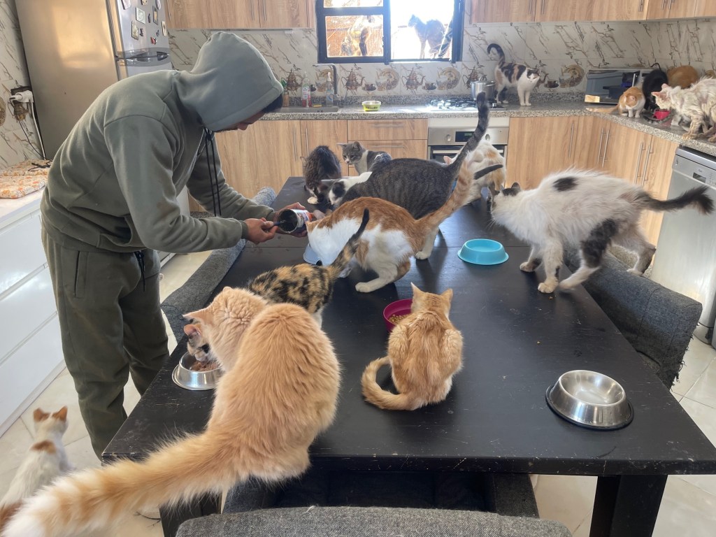 En photo : distribution de pâtées matin, midi et soir pour les petits et les malades dans la cuisine