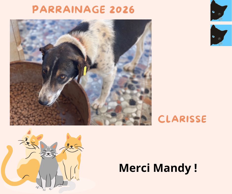 Merci à marraine Mandy Goodman pour le renouvellement du parrainage de sa filleule Clarisse pour la 2ème année et ainsi financer sa vaccination annuelle 2026 et un MiamMiam !