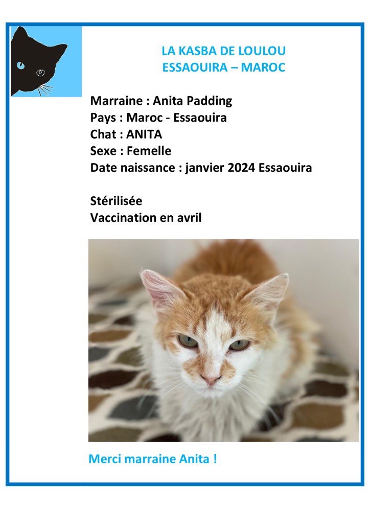 Merci à Anita Padding d’avoir choisi de parrainer Anita et ainsi financer sa vaccination annuelle 2026 !