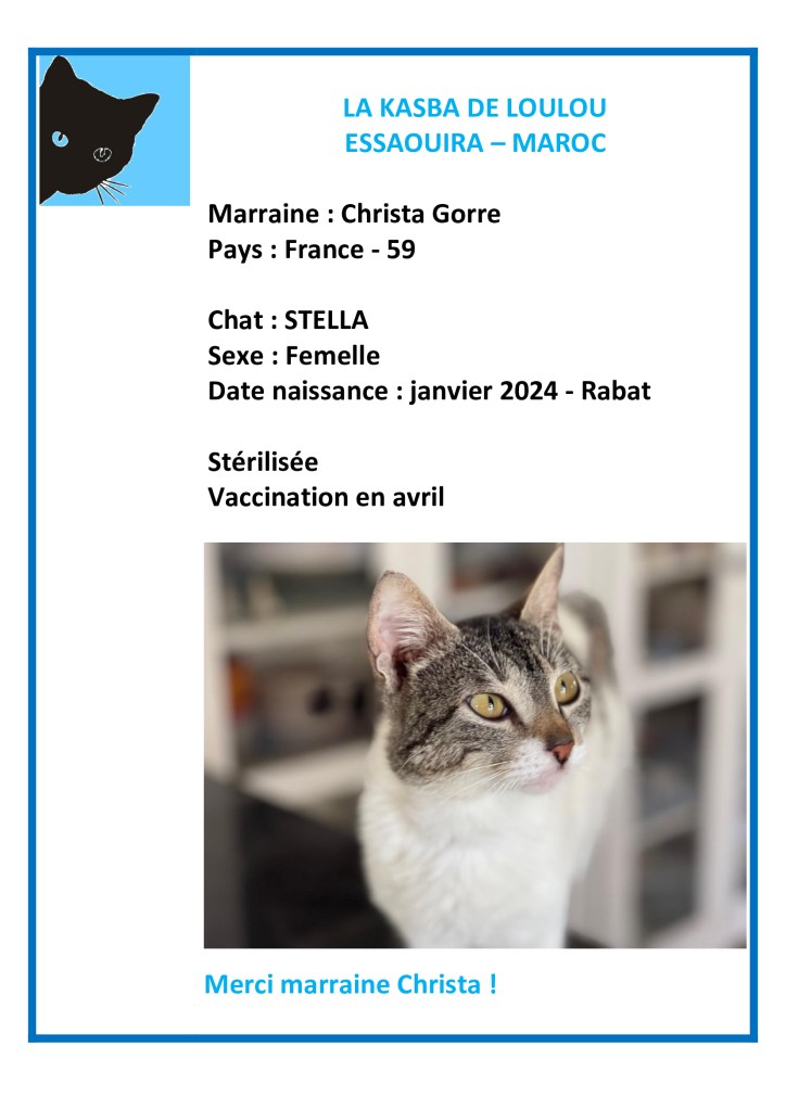 Merci à Agatha Miller d’avoir choisi de parrainer Stella et ainsi financer une partie de sa pension mensuelle ! Et entièrement la pension du mois d’avril !