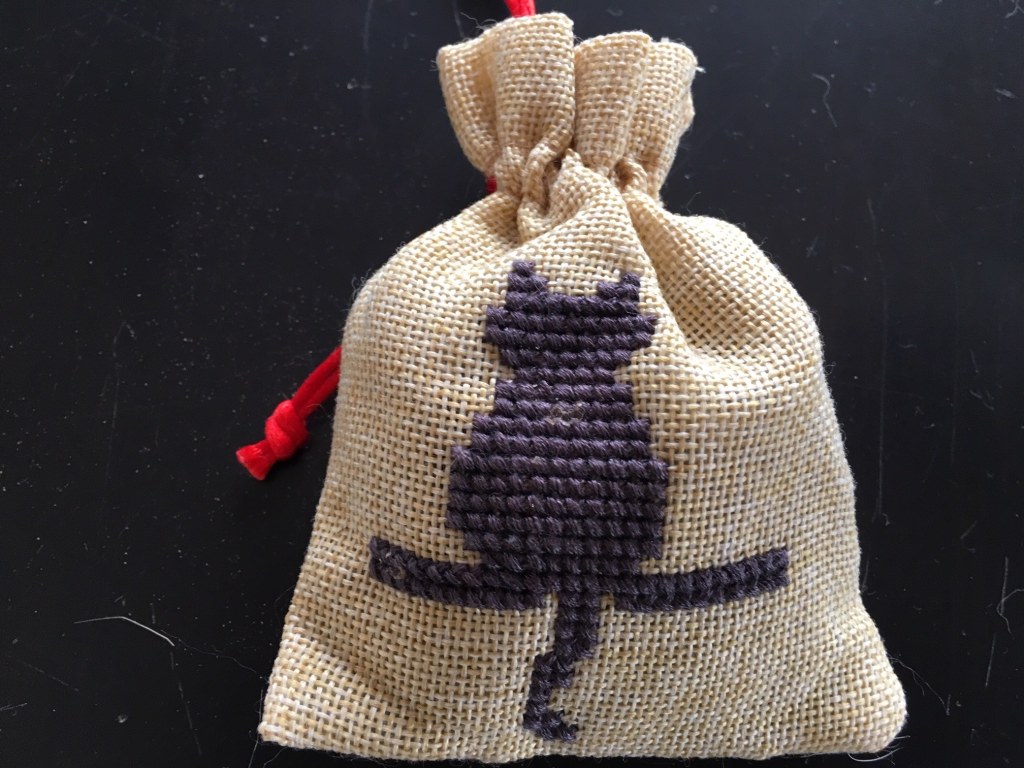 A vendre aussi : pendentifs petits chats – Pendentifs grands chats – Sachets lavandes au point de croix