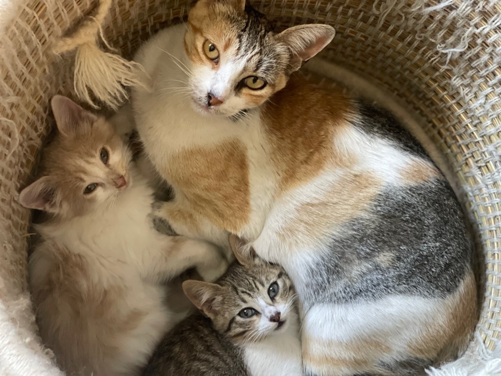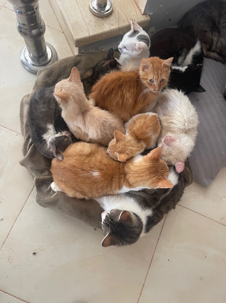 En photo : les chats se réchauffent en eux… les énormes pluies ont apporté le froid… mais à partir de demain le soleil recommence à briller !