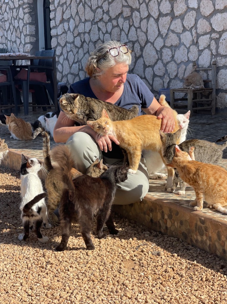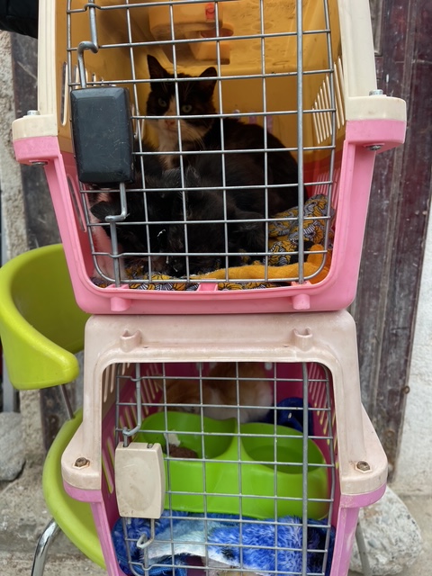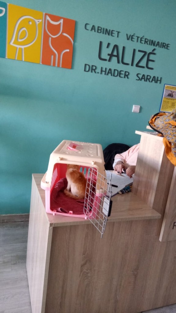 J’ai appelé Raja El Abdi, cette femme admirable qui jour et nuit aide les animaux des rues d’Essaouira. Nous travaillons ensemble main dans la main. Elle est venue chercher le petit bout et l’a amené chez Sarah la vétérinaire Cabinet vétérinaire l’alizé . Noëlle est restée ensuite à la maison des chats qui sert pour la stérilisation des chats (avant et après l’opération) et pour les chats qui vont venir au refuge. La petite a bien mangé après son traitement. Papa Bernard va amener aujourd’hui Noël au refuge pendant que je m’occupe du marché ce dimanche.