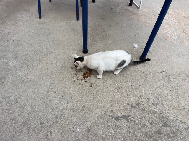 Les chats du quartier ont profité des croquettes toujours dans mon sac !