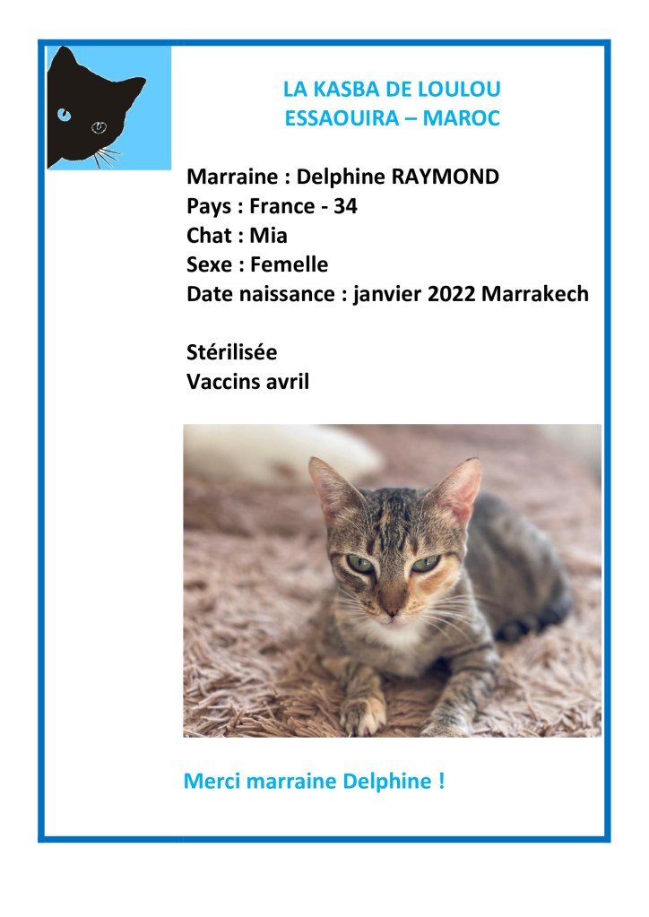 Merci à marraine Nathalie Journaux pour le renouvellement du parrainage de sa filleule Palma pour la 4ème année et ainsi financer sa vaccination annuelle 2025 !