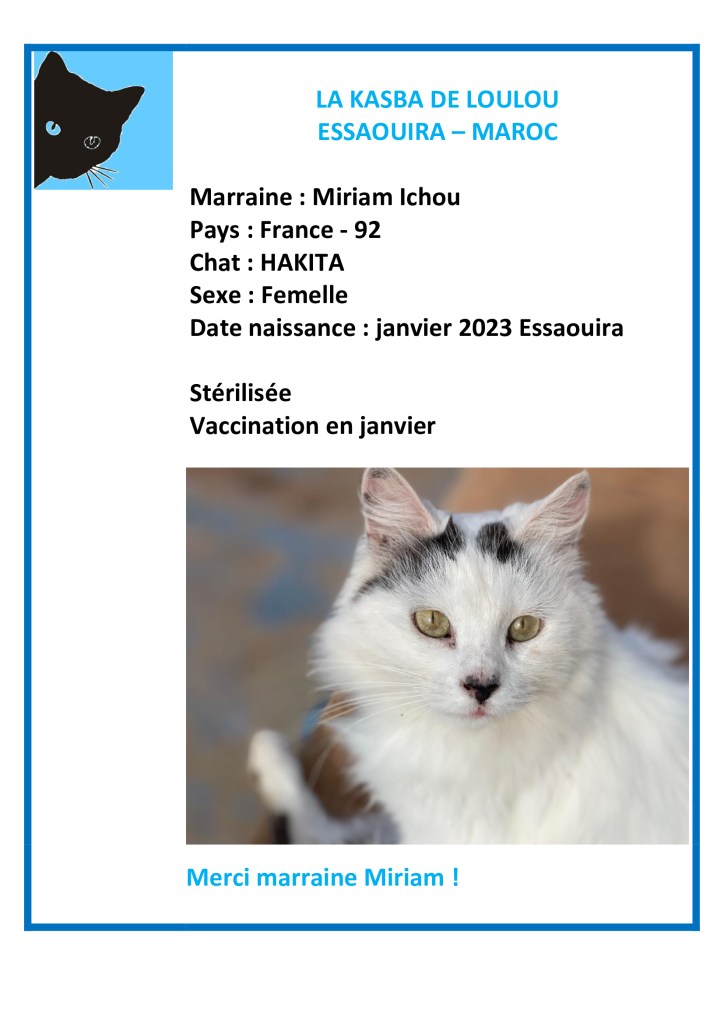 Merci à Sanaa Chichou d’avoir choisi de parrainer Hakita et ainsi financer sa vaccination 2026 !