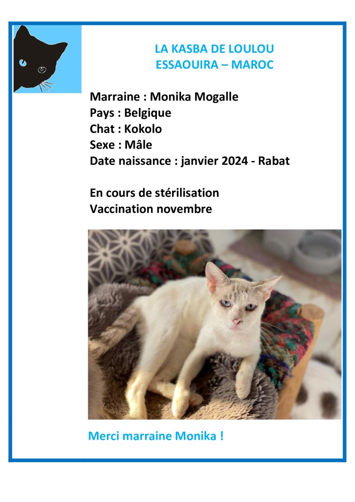 Merci à Monika Mogalle d’avoir choisi de parrainer Kokolo et ainsi financer sa pension mensuelle !