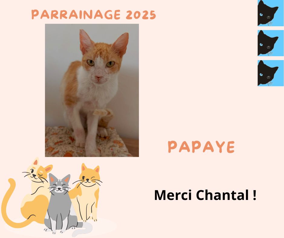 Merci à marraine Chantal Ferra pour le renouvellement du parrainage de son filleul Papaye pour la 3ème année et ainsi financer sa vaccination annuelle 2025 !